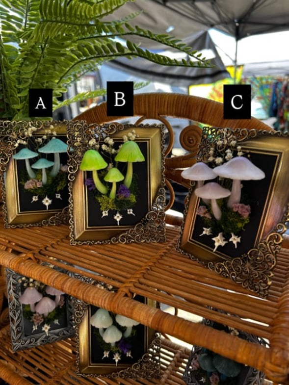 There's a switch to make it glow🤍 Battery operated (CR2032), comes with batteries. Frame size 5”x4” Can be hung up on wall. Snake vertebrae ethically sourced